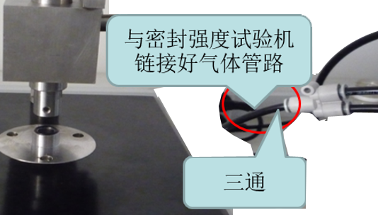 1、將泡罩包裝密封性能測(cè)試裝置與泄漏與密封強(qiáng)度試驗(yàn)儀過一個(gè)三通連接起來。