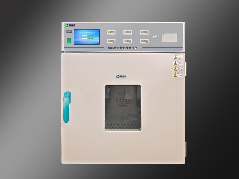 針對(duì)膠帶的粘著力做靜態(tài)負(fù)載試驗(yàn),設(shè)定在一定溫度下、一定的荷重下自動(dòng)計(jì)時(shí)膠帶所能保持的時(shí)間,以確認(rèn)膠帶粘著的時(shí)效。